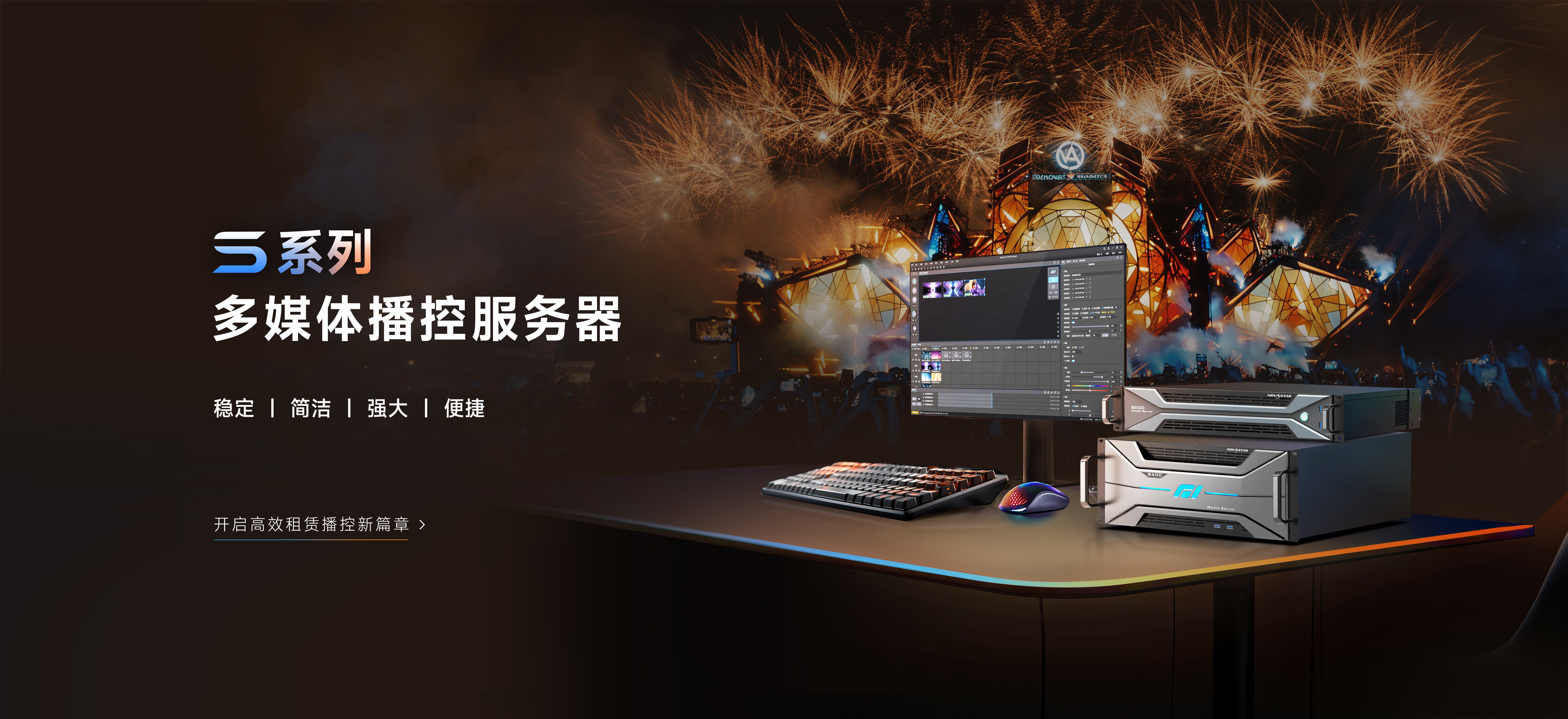 諾瓦星云舞臺(tái)租賃專(zhuān)業(yè)解決方案,集切換、處理、控制于一體,功能強(qiáng)勁。 視頻控臺(tái)、無(wú)縫切換器、多畫(huà)面拼接處理器、視頻控制器、4K獨(dú)立主控、智能管理軟件等,強(qiáng)強(qiáng)聯(lián)手,高度集成,...